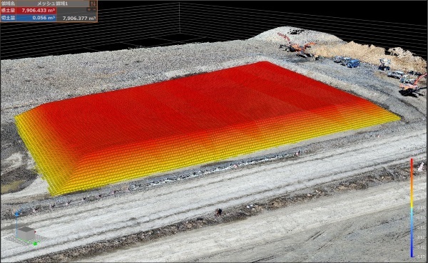 メッシュ法による土量の算出!視覚的な表現も可能です!