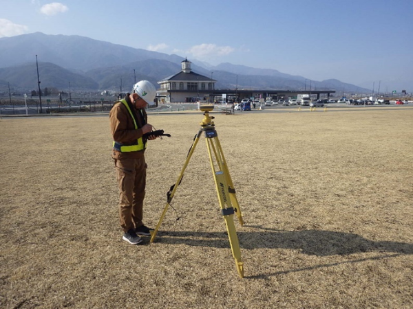 人工衛星を利用したGNSSや、トータルステーションを用いて新たな基準点の座標値を求めるための作業のことです。各測量を行うための基礎となる作業であり、高い精度が求められます。