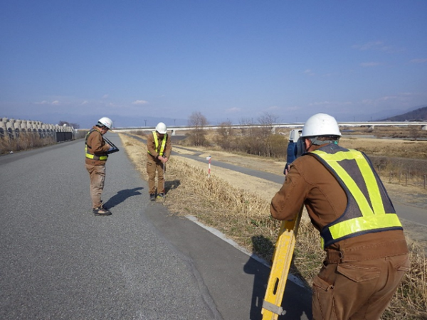 現地にて地形の形状や河川などの自然の対象物、道路や建築物などの人工の構造物、それらの位置や形状を測定し、平面図を作成する作業のことです。平面図は設計や防災など、様々な用途に活用されます。