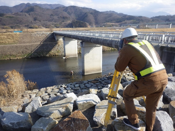 河川測量は河川の災害防止、維持管理のために必要な測量であり、河川の形状や水位、流量、深さ等を調査します。河川測量は定期的に行うものであり、測量成果は治水、利水の総合的な管理や河川保全等に用いられます。